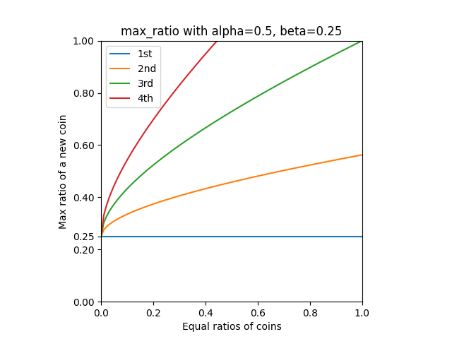 \(\text{maxRatio} = \frac{(0.5 + 0.25 \times \frac{0}{10^{18}})^2}{10^{18}} = 0.25\)